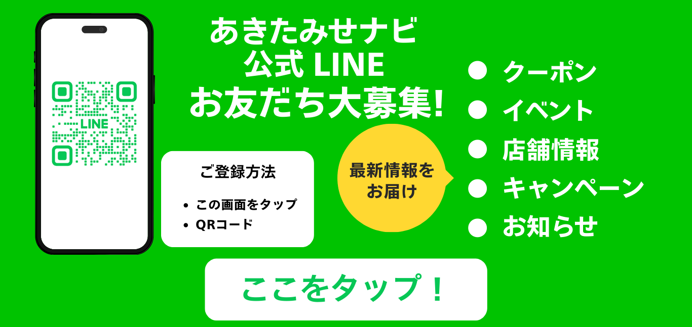 『秋田県を中心にグルメ・イベント情報専門メディア』 ■みせナビサイト掲載店舗1,000店舗超え ■地元の“うまい店・たのしいイベント”を発信📸 ■秋田県を中心にSNSで地域を盛り上げ中🔥 ■掲載・特集・イベント告知募集中📩 秋田のみせを元気に! ▼みせナビサイト・掲載申込はこちら▼