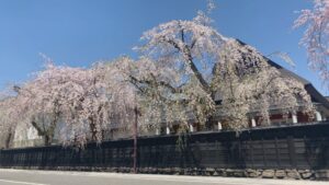 黒板塀と枝垂桜が織りなす、風情あふれる武家屋敷群