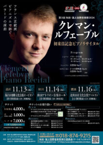 湯沢公演に加えて、クレマン・ルフェーブル氏のリサイタルは秋田市と鷹巣でも開催されます。