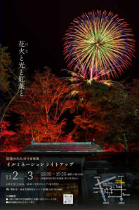 午後4時30分から、庭園内の紅葉がライトアップされ、鮮やかな秋の景色が楽しめます。 - 花火