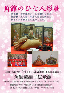 角館の伝統文化を感じられる「角館のひな人形展」が、角館樺細工伝承館にて開催されます。