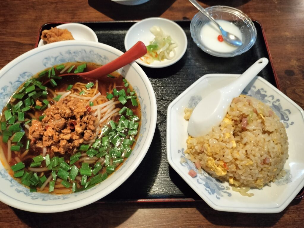 夜は人気の居酒屋ですが、実はお昼のランチ営業も超ガッツリ系!サクサクでジューシーな特大サイズの「からあげ定食」は、ご飯の量が選べて大満足間違いなし。また、ピリ辛の餡とたっぷりの牛バラ肉が絡む「牛バラチャンポン」も中毒性が高く、残った旨味たっぷりのスープにご飯を投入してかきこむのが最高の楽しみ方です。